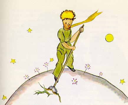 他很有见识地说: “猴面包树在长大之前,开始也是小小的。” “不错。可是为什么你想叫你的羊去吃小猴面包树呢?” 他回答我道:“唉!这还用说!”似乎这是不言而喻的。可是我自己要费很大的心劲才能弄懂这个问题。 原来,在小王子的星球上就象其他所有星球上一样,有好草和坏草;因此,也就有益草的草籽和毒草的草籽,可是草籽是看不见的。它们沉睡在泥土里,直到其中的一粒忽然想要苏醒过来…于是它就伸展开身子,开始腼腆地朝着太阳长出一棵秀丽可爱的小嫩苗。如果是小萝卜或是玫瑰的嫩苗,就让它去自由地生长。如果是一棵坏苗,一旦被辨认出来,就应该马上把它拔掉。因为在小王子的星球上,有些非常可怕的种子…这就是猴面包树的种子。在那里的泥土里,这种种 “这是个纪律问题。”小王子后来向我解释道。“当你早上梳洗完毕以后,必须仔细地给星球梳洗,必须规定自己按时去拔掉猴面包树苗。这种树苗小的时候与玫瑰苗差不多,一旦可以把它们区别开的时候,就要把它拔掉。这是一件非常乏味的工作,但很容易。”