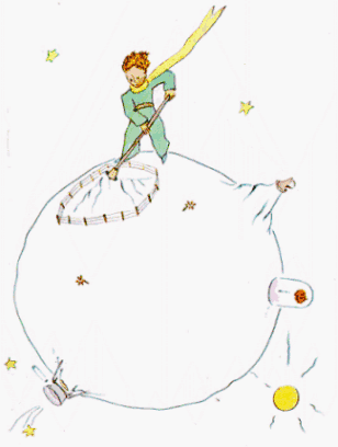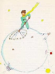 当人们想们想要说得俏皮些的时候,说话就可能会不大实在。在给你们讲点灯人的时候,我就不那么忠实,很可能给不了解我们这个星球的人们造成一个错误的概念。在地球上,人们所占的位置非常小。如果住在地球上的二十亿居民全站着,并且象开大会一样靠得紧些,那么就可以从容地站在一个二十海里见方的广场上。也就是说可以把整个人类集中在太平洋中一个最小的岛屿上。 当然,大人们是不会相信你们的。他们自以为要占很大地方,他们把自己看得象猴面包树那样大得了不起。你们可以建议他们计算一下。这样会使他们很高兴,因为他们非常喜欢数目字。可是你们无须浪费时间去做这种乏味的连篇累牍的演算。这没有必要。你们可以完全相信我。 小王子到了地球上感到非常奇怪,他一个人也没有看到,他正担心自己跑错了星球。这时,在沙地上有一个月光色的圆环在蠕动。